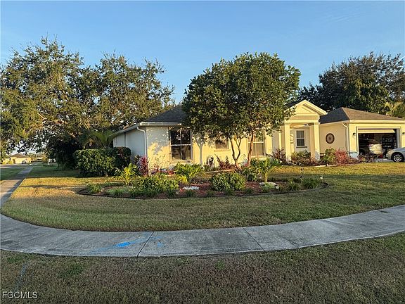 Discover your ideal home in the highly sought-after community of Bethany Trace. This stunning 3-bedroom, 2-bathroom residence sits on an oversized corner lot with a 2-car garage. As you enter through the impressive double doors, you will be greeted by a spacious living and dining area that flows seamlessly into the family room and kitchen, equipped with an eat-in bar and a reverse osmosis water system with filtered water softner. The expansive primary suite features two walk-in closets and a well-appointed bathroom with dual sinks, a separate shower, and a luxurious tub. Step outside to your screened-in lanai, perfect for relaxation, and enjoy the vibrant fruit trees in the backyard. From the front, soak in the most breathtaking sunsets. This centrally located property is just minutes from Veterans Park and Amanecer Elementary/Lehigh Acres Middle School. Don’t miss the opportunity to make this furnished home yours!