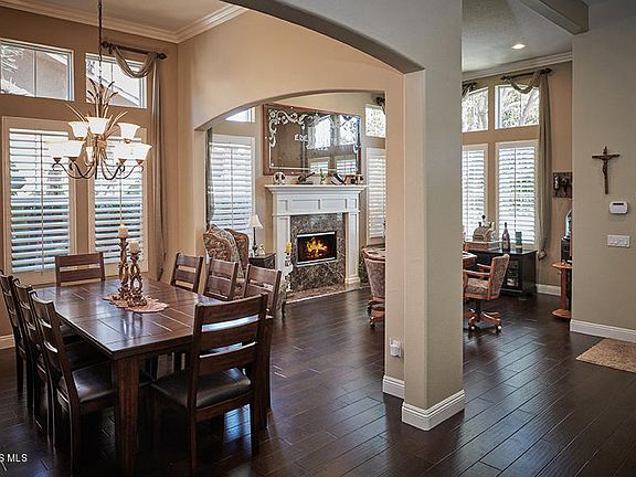 Beautiful Guard-gated Hearthstone home shows like a Model! 4 Bedroom / 3.5 Baths boasting 2,780 sf. Inviting Open Kitchen w/Granite Counters, decorative backsplash & Newer Stainless Appliances. Downstairs Bedroom En Suite with shuttered slider to backyard. Other Amenities are a Nest Thermostat, dual pane windows, newer interior decor paint, plantation shutters throughout, newer manufactured hardwood flooring downstairs and hardwood upstairs. Fireplaces In Both Living & Family Rooms, Granite Counters In All Baths. Family room has French door to covered patio complete with Fan and included TV. Upstairs, step into your Master bedroom with double door entry and hardwood floors. Relax in the oversized tub and enjoy the marble-like floors and shower in Master Bath. Master Bath also has a French door leading to the front Balcony for a quiet evening of stargazing. And an Upstairs Laundry Room too! Pebble-tech Pool with two shallow ends to play and a Spa to end a busy day or for hours of Pool-Side Entertaining!! The Front & Rear Yard Landscaping Is Lush & Inviting. Don't Miss This Exceptional Residence!