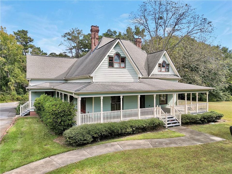 Escape the hustle and bustle of the city and enjoy peaceful country living in this Victorian-style beauty nestled on 3 serene acres in Jenkinsburg, GA, just about 45 minutes south of Atlanta. Boasting 3,772 sq. ft., this 4-bedroom, 3.5-bath home offers so much untapped potential and timeless Southern charm. Step inside to find original hardwood floors, two primary suites on the main floor, a spacious sitting room, living room, and an eat-in kitchen complemented by both formal and informal dining areas plus a butler’s pantry—perfect for entertaining. Upstairs, you’ll find a large loft area with access to a terrace overlooking the property, as well as an unfinished room ready to be customized to your needs—whether that’s an office, gym, or additional bedroom. Outside, relax on the wraparound porch and take in the gorgeous country views from this quiet, tree-lined street. With just a little love—such as updating the A/C—this home can truly shine and become the perfect countryside retreat to call your own.