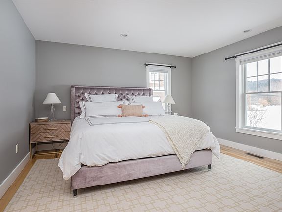 4 bedroom 3 bath Meadow View condo with two car garage, private yet on the Mountain Road. First floor Primary suite. Second floor features a guest suite, two additional bedrooms with shared bath and TV Room. Eat in kitchen with granite counters has all the stainless steel appliances including a wine cooler and 2nd warming oven. Maple floors and custom tile throughout. Large private deck with quintessential Vermont views of a pond and red barn. Much sought after location equal distant to town and the mountain. Across the street from Thompson Park with easy access to the Stowe Rec. Seller is a licensed Vermont Realtor