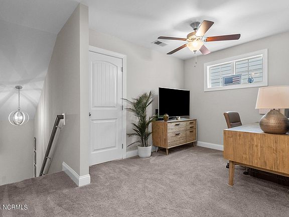 This charming three-bedroom cottage home is nestled in the highly sought-after Legacy Lakes subdivision! The primary suite occupies the main floor, complemented by two additional guest bedrooms and a loft on the second level. The home's main level boasts 9' ceilings, inviting wood flooring in the main living areas. The living room is a focal point, featuring a shiplap accent wall. The windows have custom plantation style shutters.