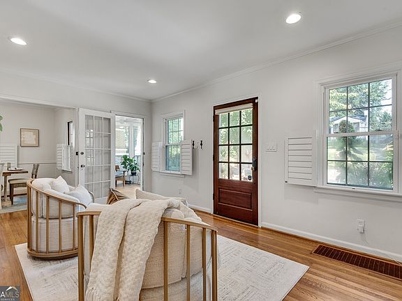 Nestled in a tree-lined street in one of Atlanta's most sought-after neighborhoods, this cozy 1940s bungalow is a perfect blend of original charm and modern updates. Bathed in natural light, every room offers serene views of the surrounding foliage bringing the outside in year-round. Step into the family room and feel like you're perched among the treetops. Step into the glass-enclosed sunroom and it's the perfect spot to watch the Maples change with the seasons. Original hardwood floors and multiple fireplaces throughout the home reflect the timeless character of its 1940s origins. The floor plan strikes the ideal balance between traditional and open living. A separate living room and formal dining room lead into an open-concept kitchen and family room perfect for everyday living or entertaining. Both the kitchen and family room open directly onto a brand-new back deck, ideal for grilling and gathering throughout the year. The primary bedroom features a beautifully renovated en-suite bathroom, offering a peaceful retreat. A second bathroom includes a combination tub/shower and a convenient laundry area. The secondary bedroom, currently used as a nursery, is freshly painted in a calming sage green that highlights the natural sunlight and leafy surroundings. Upstairs, a versatile bonus space currently used as a home office can easily be transformed into a bedroom or playroom. Thoughtful updates abound, including a newly constructed three-point-turn driveway with private gated paver parking in the backyard. The roof was replaced 9 years ago, and a new hot water heater was installed in 2022. Please see the Documents section for a complete line-item list of $150k investments and improvements! This picture-perfect home is truly move-in ready don't miss your opportunity to make it your own! Be sure to visit the Duck Pond and Garden Hills Pool during your visit!