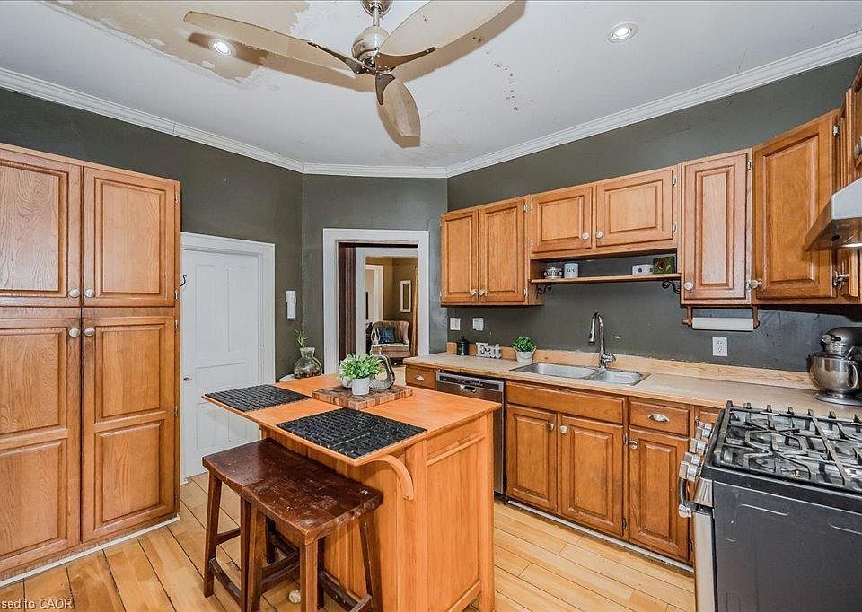265 London Rd W is nestled in one of Guelphs most sought-after central neighbourhoods, situated on a huge lot with incredible outdoor potential! This 3-bedroom, 1-bathroom home sits proudly among mature trees and established homes, just minutes from parks, schools, shops and downtown. Inside, you'll find the classic features that make century homes so beloved-high ceilings, wide baseboards, claw foot tub and original woodwork that speak to its rich history. The spacious eat-in kitchen offers loads of natural light, a handy walk-in pantry and ample counter space. The wide staircase leads to a generous second-floor landing-ideal as a home office or cozy reading nook. Each bedroom is filled with natural light plus the large master bedroom, with a generous closet, are all near the second floor bathroom offering convenience for growing families or guests. The basement features a laundry area and is the perfect space for watching the big games with the guys, hosting friends or enjoying a good movie. Offering custom decor and personal touches, this is a great space for relaxation and entertainment. The real showstopper? The expansive backyard! Mature trees frame the space beautifully offering privacy, shade and a peaceful retreat. With room to garden, entertain or even add a future garage or studio, the possibilities are endless. Whether its backyard games, summer BBQs or simply enjoying your own green escape, this outdoor space is rare in a location this central. Updates include wiring, plumbing, a newer roof, gas furnace, new windows, new eavestrough & new heat pump offering peace of mind while still leaving room to add your own personal touch and design. All this just steps from Exhibition Park, schools, shops and trails-the location truly doesn't get any better!