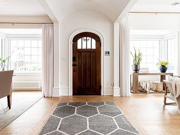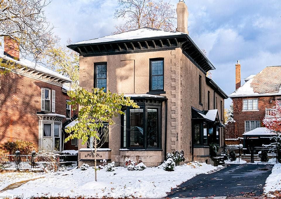Discover timeless elegance and modern luxury in this exquisitely restored 1867 Victorian. Nestled in the heart of the vibrant Durand neighbourhood, this 4-bedroom, 3-bathroom masterpiece spans nearly 2200 square feet across two stories, where original grandeur—highlighted by the arched solid wood front door, curved ceilings in the foyer, soaring 10-foot ceilings, and oversized bay windows—merges seamlessly with premium contemporary finishes. The main floor flows effortlessly through a formal living room with custom mouldings, an original marble mantle and complimentary gas log set, elegant dining area, a gourmet chef’s kitchen showcasing full-height white oak and crisp white cabinetry to the ceiling, gleaming quartz counters, and built-in full sized fridge and freezer. A designer 2-piece bath and a custom mudroom with built-in storage complete the main floor. Upstairs, the serene primary suite features floor-to-ceiling closets, a spa-like ensuite with a frameless glass walk-in rain shower, joined by three additional bedrooms, an additional 5-piece bathroom, second-floor laundry, and a sun-drenched sunroom with wrap-around windows—perfect as a cozy den. Outside, a fully fenced backyard becomes a lush, private retreat surrounded by summer grapevines. Parking for three cars and equipped with an EV charger. Meticulously maintained and upgraded with new shingles (2025), windows (2022), boiler and radiators (2023), and AC (2021), this home blends heritage charm with turnkey sophistication. Luxury Certified.