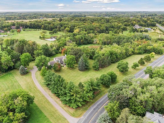 Nestled among the scenic estates of Medina’s countryside, this beautifully updated and meticulously maintained two-story home sits on over 8 acres. The newly remodeled kitchen offers stunning views of the private backyard and mature trees, creating a peaceful and serene atmosphere. Step out onto the expansive deck, which features a retractable awning, perfect for enjoying the outdoors. The deck has been thoughtfully designed with upgraded footings to accommodate a future four-season room addition. The main level effortlessly combines traditional elegance with modern convenience, featuring formal living and dining rooms alongside an open-concept kitchen, informal dining area, and family room with a fireplace. Upstairs, the primary suite serves as a luxurious retreat with an updated bathroom and a spacious walk-in closet. Two additional bedrooms, an updated full bath, and a versatile loft—ideal for a home office or lounging—complete the upper floor. The lower-level amusement room, with its cozy fireplace, opens to a charming paver patio and provides ample space for entertaining and recreation. Additional lower-level features include a workshop and a storage room, offering both functionality and flexibility. This exceptional property blends timeless design with contemporary updates, all set in a tranquil and expansive countryside setting, conveniently located just 10 minutes from Wayzata, with easy access to highways, shopping, and restaurants. Wayzata schools.