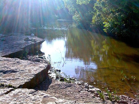 A whole lot of live water on a small tract......on beautiful Mill Creek. Good well, pecan bottom land with a high plateau overlooking the creek bottom. Multiple excellent building sites, some with panoramic views. There is an old mobile on the property that is only used as a hunting cabin. It adds no value to the property, and could easily be removed or rehabbed for a caretakers cabin.