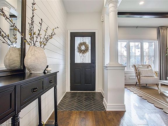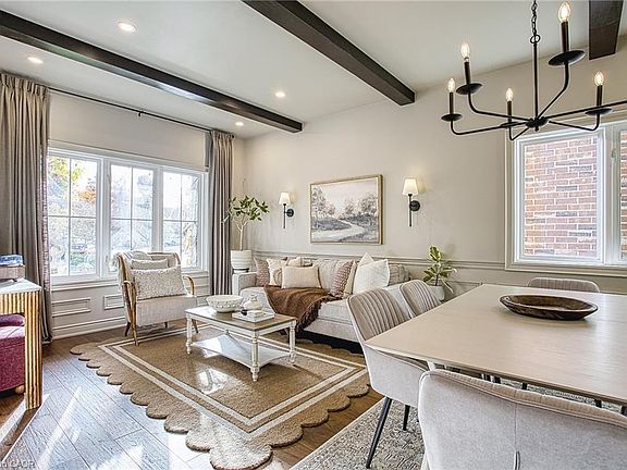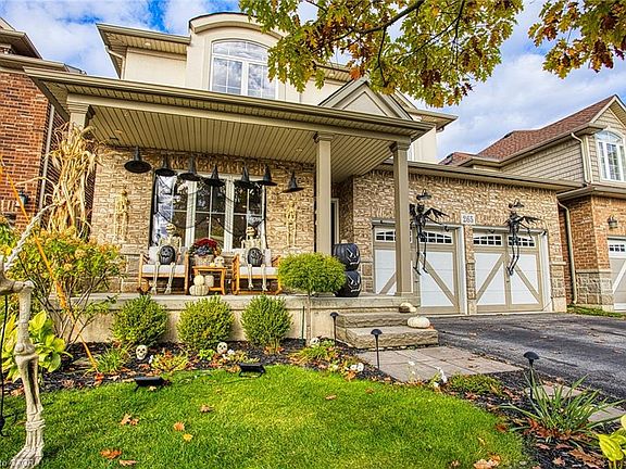 Welcome to 265 Montreal Circle, a thoughtfully curated home in the heart of the Fifty Point community. Step inside, where modern luxury meets functional space, perfect for family and entertaining. Bright, inviting space with natural light, 9ft ceilings on the main floor and upgrades throughout. Modern kitchen features updated flooring, new island and updated appliances. Custom wood beams elevate the dining area. Finished basement boasts upscale finishes, fireplace with large format marble tile, built in bar fridge and custom slat wall. Additional 4th bedroom, 3 pc spa like bathroom and flex space for rec room/gym. Ample storage, cold cellar, second fridge/freezer. Immerse yourself in the retreat like backyard featuring your very own bar (partially insulated), stamped concrete patio, newly laid sod/soil, hot tub (June 2025) and large pavilion -perfect for hosting. Close proximity to Lake Ontario, playgrounds, Winona Crossing Plaza and easy highway access. Additional features- EV charging outlet, upgraded sump pump.