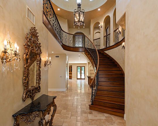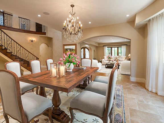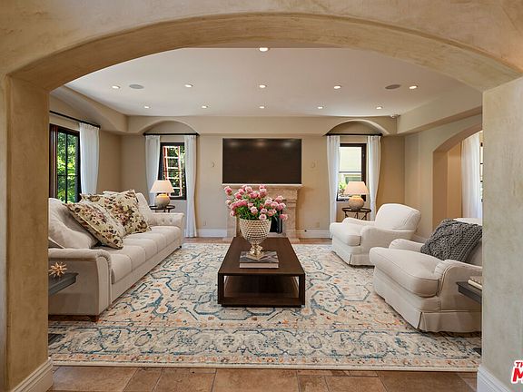 Landlord is offering 2 weeks free on a 12 month lease. Step into timeless elegance at this stunning Mediterranean estate in the heart of Brentwood. Tucked behind lush hedges and framed by mature palms, this grand residence offers unparalleled privacy and sophistication. Enter through a dramatic double-height foyer with a sweeping wrought iron staircase, domed ceiling, and ornate chandelier. The spacious formal living and dining rooms are designed for entertaining, accented by arched entryways, rich wood detailing, and natural stone floors. An expansive chef's kitchen anchors the home, featuring a massive marble island, top-of-the-line Viking appliances, walk-in pantry, and a breakfast nook that overlooks the backyard. The residence offers multiple family and entertaining spaces, including a warm family room with a fireplace, custom cabinetry, and seamless indoor-outdoor flow through French doors. A wood-paneled office with built-ins provides the ideal work-from-home setup. Upstairs, the luxurious primary suite is a true retreat - complete with a cozy sitting area, fireplace, and French doors that open to a private balcony. The spa-like primary bath boasts dual vanities, a soaking tub surrounded by arched windows, and two oversized walk-in closets with custom storage. Additional bedrooms are generously sized and beautifully appointed, each with en-suite bathrooms. Step outside to your own private oasis - complete with a sparkling pool, elevated spa, outdoor fireplace, and multiple lounge areas surrounded by vibrant landscaping. This tranquil backyard is ideal for both intimate gatherings and large-scale entertaining. Located moments from Brentwood's best shops, dining, and schools, this exquisite home combines Old World charm with modern comforts in one of LA's most desirable neighborhoods.