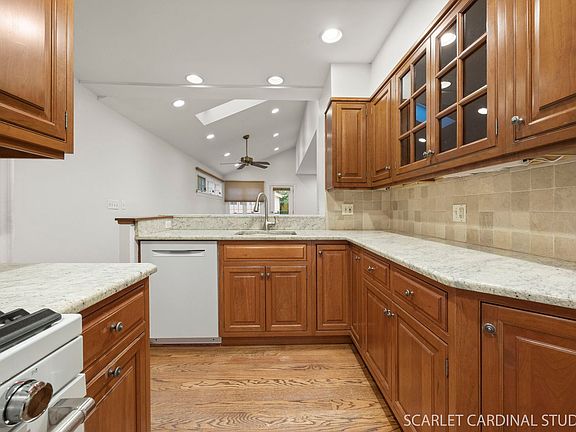 Charming brick ranch nestled in the heart of the quaint Village of Glen Ellyn. Exceptional location near Lincoln Elementary School, Sunset Pool and Park, downtown Glen Ellyn, shops, restaurants, Metra train station, and numerous Village amenities! This well-maintained home is move-in ready and features neutral decor with gleaming hardwood floors throughout. The inviting living room, complete with a cozy fireplace, and the separate dining room create the perfect setting for entertaining guests. An updated kitchen, equipped with granite countertops, custom cabinetry, and a breakfast bar, seamlessly connects to a spacious vaulted and skylit family room with doors leading to a large deck overlooking a deep landscaped yard. The primary bedroom with French doors opens to a private patio, providing a serene retreat. Additional living space can be found in the finished basement, which includes a recreation room and a full bath. You will love spending countless hours entertaining or unwinding on the expansive deck that overlooks the private, parklike, fenced yard.