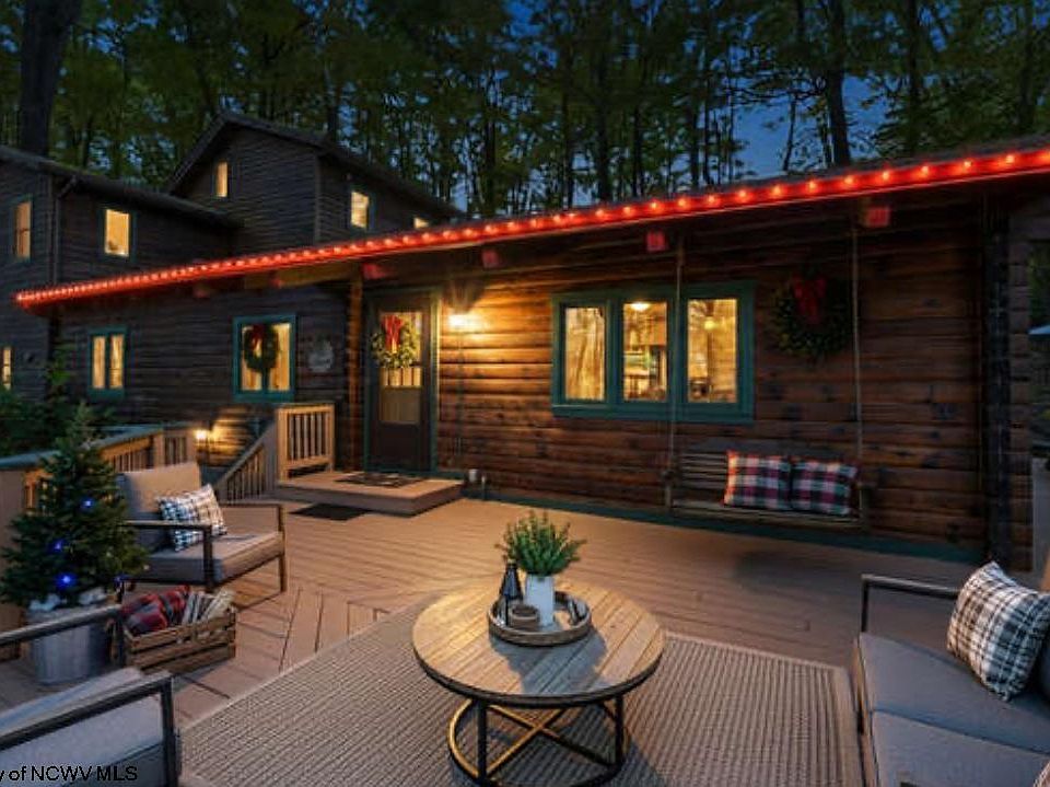 Happy Holidays at Paradise Lake — A warm and inviting log-style retreat nestled among mature hardwoods and located just off the 8th hole at Paradise Lake Golf Course, this home offers a rare blend of privacy, character, and year-round comfort. Thoughtfully maintained and beautifully presented, the property showcases the charm of lake living paired with the convenience of both modern outdoor and indoor gathering spaces. The expansive wraparound deck provides multiple outdoor living zones perfect for relaxing, entertaining, or enjoying the natural wooded backdrop. Exterior lighting enhances the warm, lodge-like appeal of the home, especially in the evenings. Inside, the vaulted great room features exposed beams, skylights, and wood tones that bring a cozy cabin ambiance to the heart of the home. Key Features: • Private log-style home in a wooded setting off the 8th hole • Expansive wraparound deck with multiple seating areas • Vaulted great room with exposed beams and skylights • Beautiful wooded surroundings • Ideal for full-time living, vacation retreat, or 6-month+ rental potential Buyer to verify all information. Some photos are staged AI