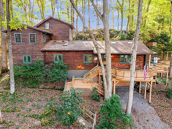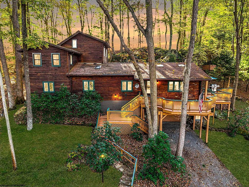 Paradise Lake Perfection | Nearly 2 Acres | Lake Access | Golf Course Nearby | Log-Style Sanctuary. Tucked away in the trees and wrapped in warmth, this log-style home at Paradise Lake is everything lake living should be — private, peaceful, and drop-dead gorgeous. Step inside and be swept away by vaulted, beam-studded ceilings, skylights that pour in natural light, and the rich glow of knotty-pine style walls and hardwood inspired floors. At the heart of the home, the kitchen/living room area windows bring the beauty of the woods indoors.— the perfect backdrop for morning coffee or a late-night glass of wine. The kitchen connects to an outdoor deck, creating that effortless cabin-chic flow with plenty of space to cook, gather, and unwind. With 4 bedrooms and 2 full baths, there’s room for everyone — whether you are hosting weekend fun or just soak in your own private piece of paradise. Outside, multiple decks wrap around the home like a treehouse, offering views that stretch through the woods. You’ll love the private lake access for kayaking, fishing, or just soaking in the stillness — and for golf lovers, your backyard even meets the 8th hole at Paradise Lake Golf Course! Perched on nearly 2 acres with filtered lake views and a secret waterfall pond waiting to be rediscovered, this is more than a home — it’s a fairytale come to life. Add your own updates and touches to make this storybook retreat completely yours in the enchanting heart of West Virginia’s hidden paradise...Paradise Lake. Buyer to verify all information. Some photos have virtual staging.
