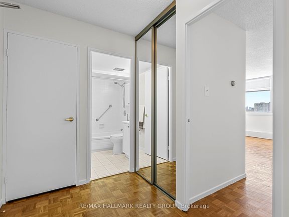 Welcome to 265 Poulin Avenue, Unit 805 where an open layout meets a panoramic view. Step into the unit and you're greeted by a bright foyer w/mirrored sliding doors that keep coats and shoes neatly organized. From here, the home opens into a spacious living&dining area filled w/natural light. Large windows showcase the unobstructed view of the Ottawa River, creating a peaceful backdrop that changes beautifully w/each season. The open layout gives you freedom to arrange your space however you like cozy reading corner, dining by the window, or an open entertaining setup. Step through the patio doors to your private balcony, an ideal spot to unwind after a long day or simply take in the views of lush treetops and the water beyond.The kitchen is designed for both function and comfort. Bright white cabinets offer generous storage & ample space makes meal preparation enjoyable. Tile flooring adds a clean touch in the kitchen & transitions seamlessly into warm hardwood floors that flow through the main living areas & bedroom. The bedroom is bright & spacious, filled w/natural light. A large wardrobe w/sliding doors provides plenty of organized storage. A modern bath completes the layout, featuring clean white finishes & excellent cabinet space. An in-unit storage room adds extra convenience, perfect for pantry items or seasonal belongings. The unit also includes 1 underground parking spot as a bonus during Ottawa's winter. You'll enjoy access to fantastic building amenities including an indoor pool, sauna, fitness room, party room, library, pool table, laundry facilities, and outdoor tennis courts. Outside, you're steps from Mud Lake, Britannia Beach, and the scenic walking & biking trails along the river. Beachconers Ice Cream Shop is just down the street, and schools, grocery stores, restaurants, and Bayshore Shopping Mall are all nearby. Perfect for anyone seeking comfort, convenience, and a relaxed lifestyle with a view, this condo truly offers it all.*Some photos are