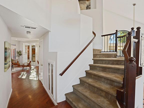 Stunning Quail Meadows Home - Thoughtfully Upgraded & Move-In Ready. Welcome to this beautifully maintained gem in the desirable Quail Meadows community, offering the perfect blend of comfort, functionality, and style. With two spacious living areas and a full bedroom and remodeled bathroom on the main level, this home is ideal for multi-generational living or welcoming guests in comfort and privacy. Step into the inviting family room, where you'll find sleek laminate flooring, a cozy electric fireplace with custom mantle, elegant plantation shutters, perfect for movie nights or entertaining in style. Upstairs, discover three generously sized bedrooms, including a luxurious primary suite complete with a large walk-in closet and a beautifully remodeled en-suite bathroom. All bedrooms, but Master, are equipped with ceiling fans, and an additional third remodeled bathroom features a tub-over-shower combo. A flex space at the top of the stairs offers the perfect nook for a study desk, reading area, or homework station. At the heart of the home is a well-appointed kitchen showcasing a sleek Silestone island, breakfast bar, eat-in dining area, and ample cabinetryperfect for everyday meals or entertaining guests.Sparkling pool with Solar heat and outdoor kitchen.