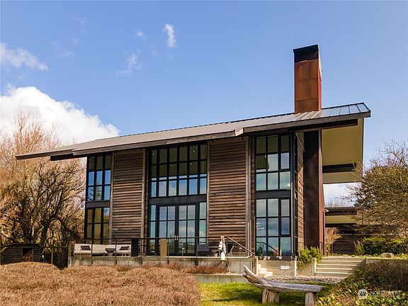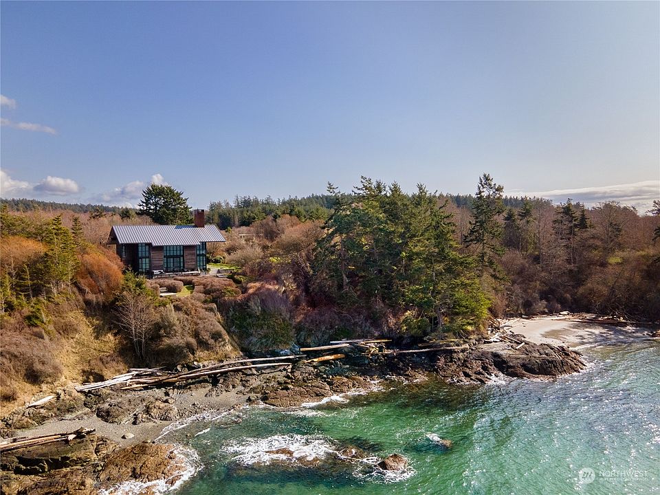This dramatic west-facing waterfront residence is an extraordinary find - one of the finest examples of legendary architectural firm Olson-Kundig’s iconic style. The clean & contemporary 2844 sq.ft. two bedroom, two bath residence is a wonderful combination of wood, concrete, glass, & steel. Understated yet sophisticated vaulted interiors were perfectly executed to maximize sweeping views of Haro Strait and the Olympic Mountains. Meander through Kundig designed gardens to the private and unique “False Bay Writer’s Cabin”, an engineering work of art. The 520 sq.ft. cabin was designed to serve as a private writer’s retreat & guest cottage. The 9.5+ acre property consists of two separate tax parcels. Ask your Broker for features list.