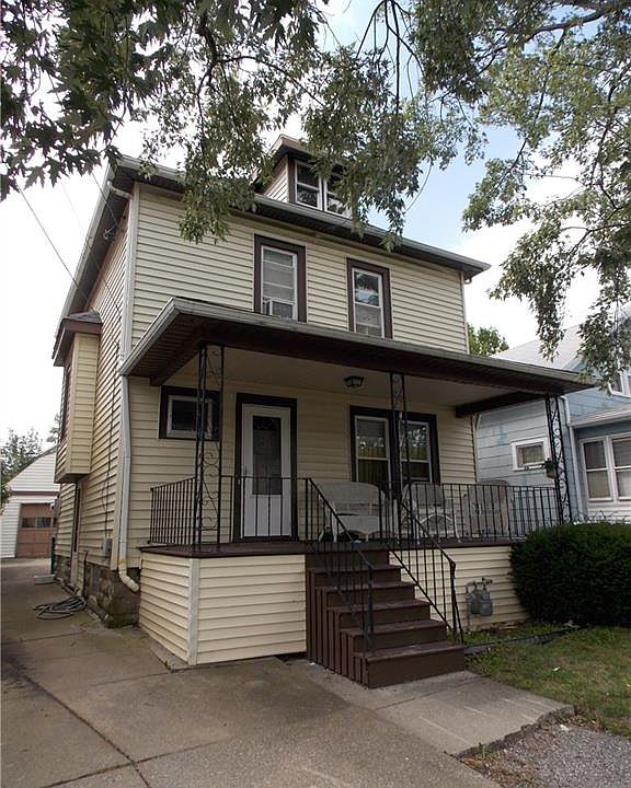 Family home featuring curb appeal with a nice front porch. Some hardwoods under the carpets, formal dining room, eat in kitchen and three good sized bedrooms on the second floor. Solid mechanics include glass block windows, 3 year old complete tear off roof and main sewer line replaced 2 years ago. Central Air is in "as is" condition. 24 notice for all showings please.