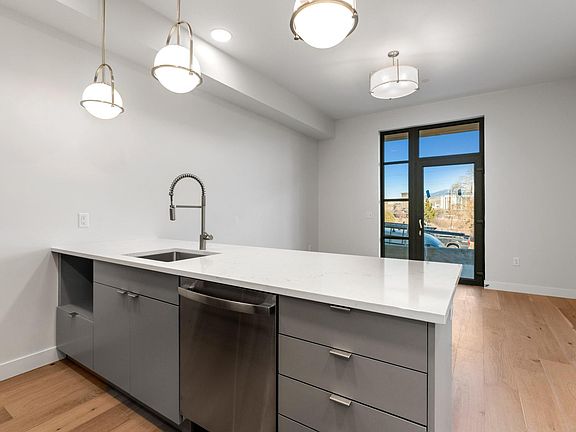 First floor luxury living in this new condo complex located very near the Clark's Fork in the University District of Missoula. Ideal living experience for the single bachelor/bachelorette. Kitchen has new stainless steel GE appliances. Wood floors in hallway, kitchen, living & dining areas. Bathroom is tiled, with a spacious shower. Washer/dryer hookups. This unit has downtown views and the Clark's Fork view(only a minute's walk for your summer dips and kayak/paddleboard launching). Custom motorized roller blinds controlled by a single click. Operable windows open from the top or side.
