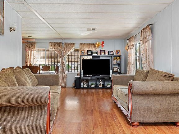 Welcome home! Enjoy living in this 2 bedroom and 2 full bathroom family park mobile home. ALL Ages are welcome!! This is a FAMILY park and is an excellent opportunity to stop renting and start owning your own home! Recently painted interior. New bathroom vanities at both bathrooms. This home is move move in ready! Interior washer and dryer connections. Spacious living room and dining room areas. Kitchen is warm and inviting. Premium location thanks to a very spacious and private backyard just perfect for your friendly and family gatherings! Covered and spacious front porch and outside storage shed.