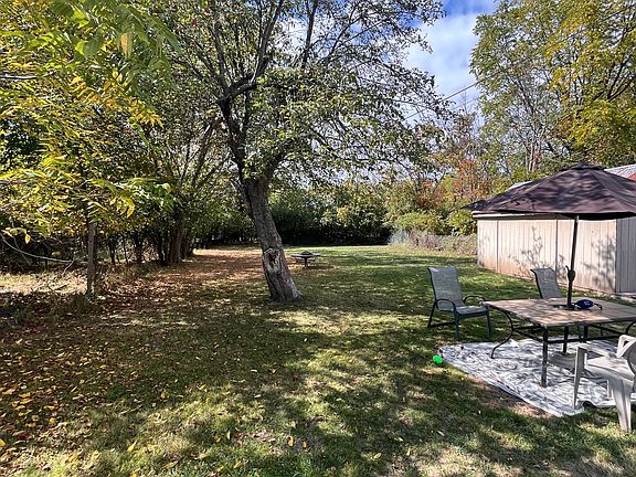 There are four off street parking spots in the driveway. The partially fenced backyard feels like a park, surrounded by trees. Extremely quiet and peaceful! The backyard also features a large shed for storage.