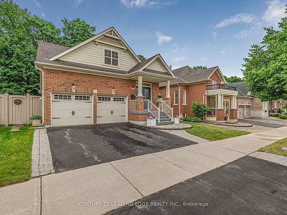 Attention Empty Nesters!!! First time offered for sale, rare bungaloft (approx 2,200sqft) located on a desirable south facing lot in west Stouffville. A true Entertainer's delight features an open concept design, 9' ceilings with crown moulding, loaded with hardwood including staircase to both upper & lower levels, family sized kitchen with granite counters, terrific storage (large pantry), pot lights and 8' by 3' centre island (breakfast bar) overlooking dramatic great room with vaulted ceiling (skylight), floor to ceiling gas fireplace & garden door walk-out. Private, spacious primary bedroom with spa-like 5pc ensuite (separate glass shower & tub), walk-in closet & custom window bench. Formal dining room (can also be used as den). Upper level with guest bedroom (double closet), 4pc bath & media loft with two large windows. Designated laundry room, Huge unspoiled basement. High ceilings in garage. Beautifully landscaped front & back with interlock stone, mature trees & stunning 22' by 8' covered porch with gas bbq hookup. A high quality build by Geranium Homes (2011). This one is a must see!!!