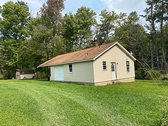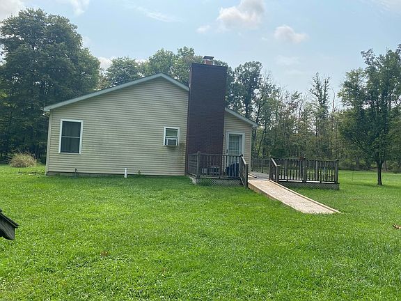 Drive down your long private driveway to this welcoming well built ranch home. Walk into your laundry/mudroom off the side deck, into your open concept eat-in kitchen and dining rooms. In the large living room you will find a beautiful stone fireplace. The one level living home sits on 12 acres and also has a large 31x26 detached garage with a full bathroom that could be converted into a generational suite! There is also a large storage shed on the property to keep all of your yard working equipment. This home is conveniently located close to i-80 but offers a lot of privacy as well.