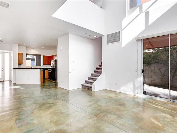 Welcome to your perfect desert oasis in sunny Palm Springs! This 2 bedroom, 2.5 bathroom Palermo condo is the ideal spot to kick back and enjoy all that this beautiful area has to offer. Built in 2007, this home boasts a modern open floorpan with 1300 square feet of living space and 30 foot high ceilings in main living area, along with upgraded polished concrete flooring on the main level and high-end tile in the master bathroom. From the balcony you can take in stunning views of windmills and breathtaking sunsets!The outdoor area has been professionally landscaped for your enjoyment and relaxation and an outdoor fireplace to cuddle up next to for those cooler winter nights. Plus, an attached garage and newer appliances including a washer/dryer have recently been installed for your convenience. Best of all - it's just two doors down from one of two heated pools! You'll also find plenty of amenities within walking distance like a fitness center, meeting facility, and picnic areas so you can entertain guests with ease.If you're looking for a move-in ready home that offers style, comfort & luxury - look no further than this incredible Palm Springs condo! Schedule your showing today!