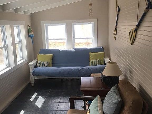 Totally renovated cottage on a corner lot: 2 bedrooms, kitchen, bathroom, living/dining room, mudroom and sleeping loft. Large deck, large yard, fire pit seating area, shed, outside shower. Custom plantation shutters throughout, gas fireplace, split ductless AC/heating system. Neighborhood Description Residential neighborhood .2 miles from National Seashore Visitors Center and historic Eastham Schoolhouse Museum.