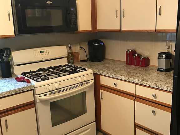 Move in ready condo! Spacious 2 bedroom, 1 1/2 bathroom condo. Brand new hardwood floors throughout and brand new carpet in basement. New kitchen counter top in kitchen. Condo has, central air, fridge, microwave, stove/oven and dishwasher. Master bedroom with bathroom attached and walk in closet. Newly painted walls and ceilings. Unit has second floor deck that oversees a scenic wooded area. Downstairs area includes, washer/dryer hookup, two large cedar closets and garage.