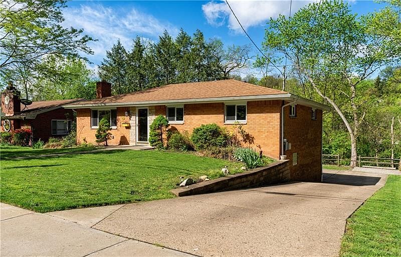 Easy living can be found in this rare level entry ranch-style home situated in the convenient East Suburb of Forest Hills. Located on a lovely tree-lined street, this brick beauty offers 3 bedrooms, 2 full baths and exposed hardwood flooring in the living room, dining room and master bedroom. Hardwood under carpeting in other bedrooms. Lower level has an amazing 26x16 game room with gas fireplace, updated carpeting and handsome knotty pine half walls. Newer deck with roof off the dining room was constructed using Trex Tiki Torch composite flooring and railings, and Owens Corning Duration Shingles. Recessed lighting adds to the after dark use of the deck, which looks out over a wooded hillside and park. The entire roof was replaced when deck was added in 2013. A gently sloped concrete driveway leads you around back to an oversized 2 car integral garage. Close proximity to boro parks, community pool, athletic fields & busline. Short drive to Pittsburgh's vibrant East End neighborhoods.