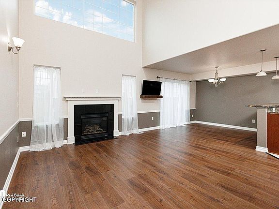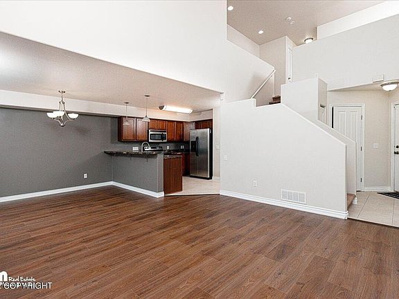 Great floor plan 3 bedrooms, 2 baths upstairs, to include master suite with walk-in closet, additional space upstairs you can use as an office, kids play/reading area. 2 Story vaulted ceiling with lots of windows for natural light, 1/2 bath downstairs, and nice outdoor space for grilling. Lots of room for storage/closets throughout. Minutes from JBER, Downtown and close to trails and parks.