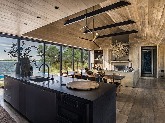 Rental Registration #: 23-366 Available any two weeks from May 23, '25 to Dec. 31st, '25 at $225,000. Find your zen in a masterfully designed and exceptional newly built waterfront property with spectacular panoramic views and stunning full sky sunsets. A long gated driveway through a secluded 2 acres leads to a magnificently designed waterfront home bordered by specimen trees for ultimate privacy. A well conceived courtyard separates the primary suite, guest rooms and common areas while providing amazing views and sensational sunsets over the infinity pool at the water's edge. With mesmerizing water views throughout, the all custom home holds a spacious open floor plan, double height ceilings, 4 ensuite bedrooms, den, chefs kitchen, water view dining, sumptuous 85' screen media room, kitchenette, gym and 4 person sauna. Floor to ceiling walls of glass disappear for coastal breezes and to seamlessly combine this private waterfront setting with the serene interiors. Various choices for relaxing include al fresco dining on water view patios and around the infinity waterside pool with two outdoor showers. This soothing magical haven with unparalleled water views as far as the eye can see inspires waterfront living at its absolute finest.