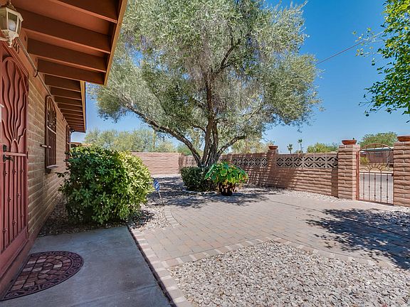 This charming 3 bed, 2 bath brick adobe home has been meticulously maintained and cared for. Open and functional floor plan with separate living, family and dining areas. Beautifully landscaped and fully fenced yard with very nice gated front courtyard. Extended covered patio for great outdoor living space off kitchen. Enclosed laundry room. Decorative and upgraded security barred windows and gates. Covered carport parking in back and large storage shed. No HOA. This really is a must see!