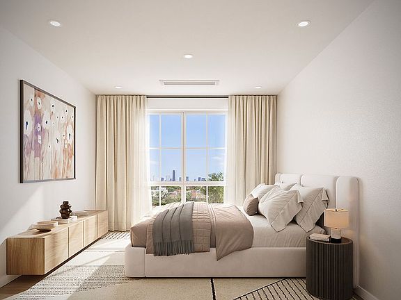 The bedroom is spacious and serene, designed as a true retreat, while the bath is finished with spa-inspired details including clean-lined fixtures, oversized shower, and contemporary tiling. With abundant storage, washer/dryer, and private storage included, the residence blends functionality with refined design.