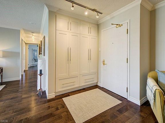 Elevated Condo Living at the Beechmount. Luxury awaits in this beautifully custom designed 2 bedroom Condo. The attention to detail is evident as soon as walk through the door. A corner suite with large windows flooding the space with natural light. This suite has been lovingly curated & each room has been designed to optimize the spaces. Fully renovated in 2015 with over $200K in luxe upgrades, including - New flooring/baseboards/crown moulding/doors/trim. Beautiful hardwood throughout, and calm colours add to the elegance. The kitchen (2015) was specifically designed with a cook in mind, sleek cabinetry and thoughtful elements, quartz countertops, panel dishwasher, stainless Steel fridge (2024), hidden microwave. The atrium dining space over looks the greenspace below and is a perfect place for entertaining. A cozy living room is off the dining area. The Primary bedroom is exemplary of the continued attention to optimizing every space with a walk-in closet featuring floor to ceiling custom storage and ensuite bathroom. The second bedroom, too, has built-in custom cabinetry and access to a lovely terrace, perfectly private for your enjoyment. Another bathroom, a 4-piece, leads into a laundry/storage room, also maintaining the next level decor consistant to this home. Highend appliances are here too, Miele washer/dryer (2019). The Beechmount is an amenity-rich condo, reputedly one of the best managed condominiums in our region. Perfectly located with daily conveniences at your doorstep. 2 Underground parking spaces. It is rare to find a condo as lovely as this one, in immaculate condition and perfectly move-in ready.