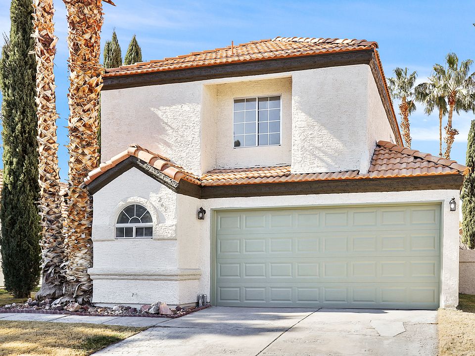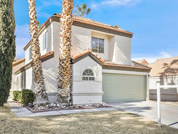 Terrific 3 bedrooms, 2.5 bathrooms, two-story home featuring a master suite on the main level located in the desirable Green Valley area at Henderson! This home possesses an attractive curb appeal with lush lawn and mature landscaping in front. Comfortable floorplan with an outstanding interior inviting into a spacious formal living room and formal dining room upon entry enhanced with a vaulted ceiling, open to below staircase, and a large window facing the side yard. The dining room is armed with a sliding glass door that leads to the outdoor patio. A separate family room is on the back of the home and also has a vaulted ceiling. The family room is open to the kitchen and has a tile fireplace providing a homey and pleasing environment. The step-saver kitchen has solid surface countertops, stainless steel appliances, a breakfast bar, and pot shelves. The laundry space is next to the kitchen and there is also a 1/2 bathroom on this level. Lovely neutral tile flooring runs throughout the kitchen and living spaces. The master suite is on the ground floor and it is modernly upgraded with wood-like tile flooring and decorative barn door. It boasts a walk-in closet and the attached bathroom. The en suite has been completely renovated with contemporary fine fixtures, modern freestanding tub, custom tiled back wall with a built-in ledge, chrome stand single sink, custom subway and mosaic tile walk-in shower with a dual shower head that includes an overhead rain shower. The upstairs has a floorplan that features a loft, 2 bedrooms, and 1 full bathroom. This lovely home is situated in a nice dog-friendly neighborhood located close to the Silver Springs Recreation Center, parks, The District, restaurants, Galleria Mall, schools, golf courses plus easy access to Interstate I-215 and I-515. Contact us NOW for further detail and viewing appointments.