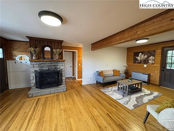 Welcome to 265 Wildcat Road, a charming 2-bedroom, 2-bathroom home that exudes a cozy atmosphere. The stone fireplace serves as the centerpiece, creating an inviting setting for relaxing evenings by the fire. This home offers one-level living with easy year-round access and ample parking. Situated near the Blue Ridge Parkway, it’s an excellent location for outdoor enthusiasts. The house sits on a 0.75-acre lot, featuring a flat side yard that includes a storage shed and a fire pit, making it great for outdoor gatherings. You can also enjoy picturesque mountain views from the front porch. Both long-term and short-term rentals are permitted, providing great investment opportunities. The home boasts hardwood flooring throughout the living areas and bedrooms, enhancing its warm and inviting feel. The primary bedroom includes a spacious walk-in closet, a full bath, and a convenient laundry area. The second bedroom is filled with natural light with an additional full bathroom that offers guests their own space. The kitchen is spacious and also offers lovely mountain views with stainless steel appliances and ample counter space. Enjoy a low maintenance home in the Parkway school district and less than a 15 minute drive to Appalachian State campus.
