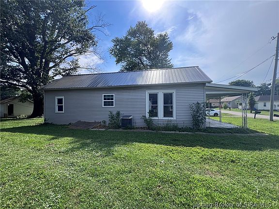 Discover the opportunity in this cozy two bedroom, one bath home, on a double lot, just a few miles from downtown Corydon. The home features hardwood floors and replacement windows. Beyond the nice sized eat-in kitchen is a versatile room that can serve as an office or additional storage. There is a spacious utility/laundry room. The covered front porch invites you to relax and enjoy the outdoors. The property has a one car detached garage and a shed (that was once used as a summer kitchen). With nearly half an acre, there's plenty of room for gardening and outdoor activities. While the home needs a little TLC, it's brimming with possibilities. Inspections are welcome, but this home is being sold As Is. Sq ft & rm sz approx
