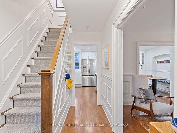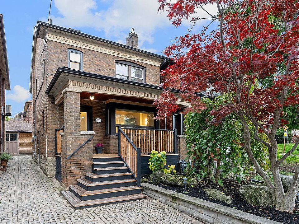 Welcome to 265 Winona Drive! Beautifully renovated detached home in the heart of St. Clair West, showcasing a perfect blend of modern finishes and timeless character. The inviting main floor features a spacious living area with a gas fireplace, wainscotting, and hardwood floors, opening to a stunning custom kitchen with a waterfall island with seating for three, quartz countertops, and stainless steel appliances. The dining area includes built-in cabinetry plus a built-in bench with storage, and double garden doors leading to a private backyard. Walkout to a large deck, and low-maintenance turf, perfect for entertaining and everyday family living. Upstairs, you'll find three bright bedrooms with hardwood floors, including a spacious primary with a walk-in closet. The renovated bathroom offers heated floors, a skylight, and thoughtful storage. The finished lower level boasts excellent ceiling height, a generous recreation room, a fourth bedroom, a full bathroom with a glass-enclosed walk-in shower, laundry, ample storage, and a side entrance. Bonus! A fully finished backyard studio with heat, dedicated power, and a skylight provides the ideal home office, gym, or creative workspace. Legal front pad parking and a new, beautiful front porch. Located steps from parks, schools, shops, and restaurants in a sought-after, family-friendly neighbourhood.