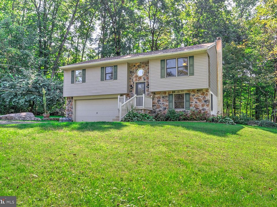 Discover the charm of this split foyer home nestled in the Adamstown area, offering a perfect blend of comfort and functionality. With 2.7 acres of lush surroundings, this property invites you to unwind and enjoy nature right at your doorstep. The interior features built-ins and a cozy dining area, ideal for gatherings and everyday meals. The eat-in kitchen is equipped with essential appliances, including a dishwasher and electric oven/range, making meal prep a breeze. Step outside to your private deck and patio, perfect for morning coffee or evening relaxation. The finished basement provides additional space for hobbies or storage, Large detached decorative block garage fits 2 cars with additional space for a workshop. Spring fed Fish pond is filled with large Koi for the new owner to enjoy. Woodstove in basement is included in as-is condition, buyer should This home is not just a place to live; it's a sanctuary where memories are made. Embrace the lifestyle you've always wanted in this inviting residence!