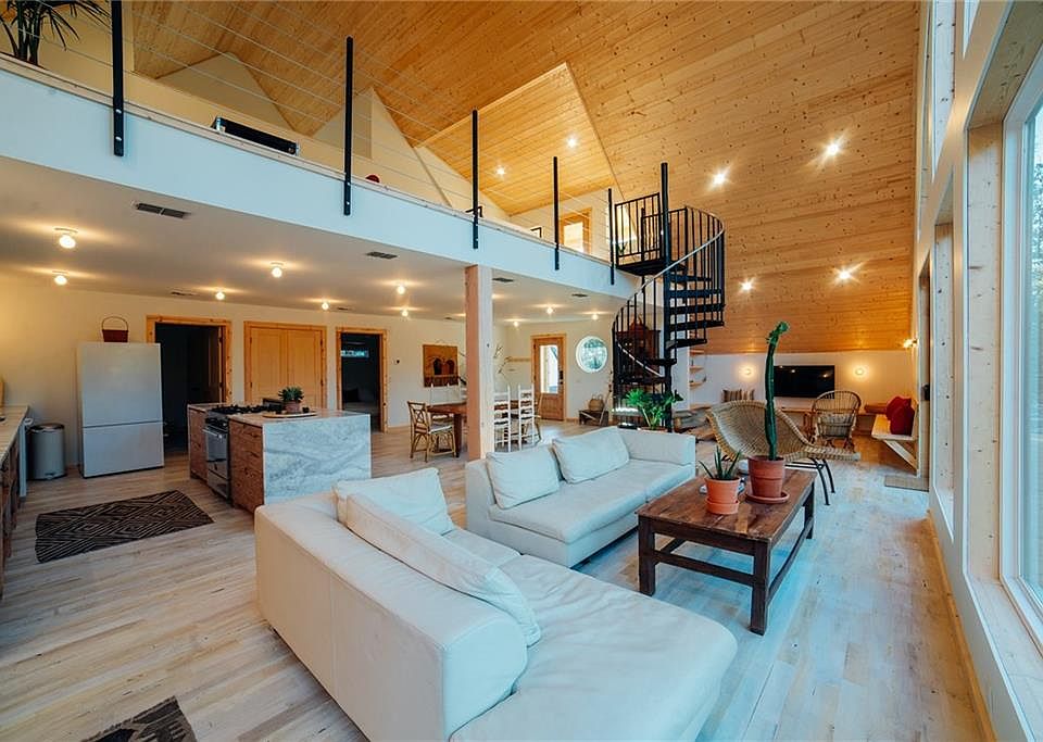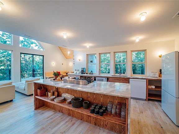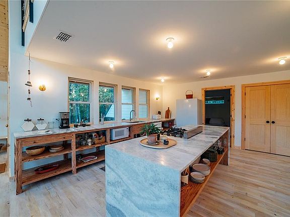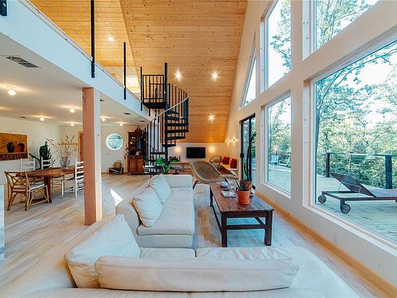 Introducing the latest modern luxury cabin in the beautiful Woodland Hills Development. Designed by Dallas-based Your House or Mine. 'California Dreaming' is a contemporary A-Frame that is nestled on a beautiful 2.6 acre secluded lot that allows you to relax in nature without the sites and sounds of other cabins close by. Outside your guests will enjoy a great view of a beautiful seasonal creek featuring a natural waterfall, outdoor dining, a gas tabletop fireplace and gas grill, a sunken Nordic hot tub and a natural rock garden. The cabin comes completely furnished and has two king master suites, both with walk-in showers and vintage soaking tubs. Features include a luxury fully stocked kitchen along with an indoor fireplace and custom-built sitting areas. Upstairs, a large open loft and separate bunk room with 6 twin bunks. High-end accessories include a Bertazzoni Gas Range, Fisher & Paykel Refrigerator, Roche Bobois sectional, and handmade concrete tile in all three bathrooms.