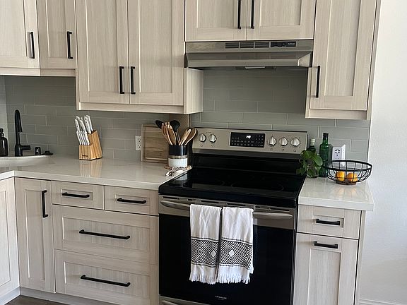 Enjoy this newly remodeled 1-bedroom, 1-bath condo with brand new kitchen, floors and windows. This fully furnished unit features an open living space with picturesque windows and a cozy bedroom with a luxurious California King size bed ideal for a restful sleep. Large dresser and full sized closet with mirrored sliding doors will store all of your personal belongings. Perfect for travel nurses, working professionals, couples, and anyone looking for a cozy place to call home.