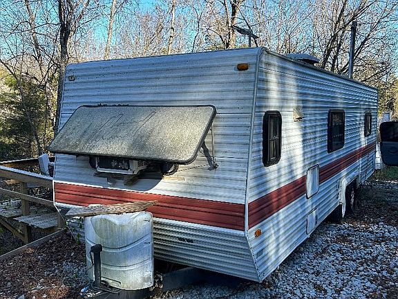 Simple relaxing and camping at Trailwood Lake. Enjoy all 4 seasons because these 3 lots come with a camper. Electric already in place, peaceful, private deck that overlook a ravine. Yes, you will enjoy the quiet, wildlife and just getting back to nature. This camper has a family room, kitchen, bath and bedroom. Water is available at the front of the camping grounds. Some personal items will remain with camper including refrigerator, stove & microwave. Some outdoor furniture will also remain. Trailwood has a large lake great for fishing and canoeing. Trailwood has a remote control entrance only. There is a $150 HOA fee and a 1 time fee for the boat dock of $150. Restrictions and plat are on line. Camper is being sold ''As-Is''.