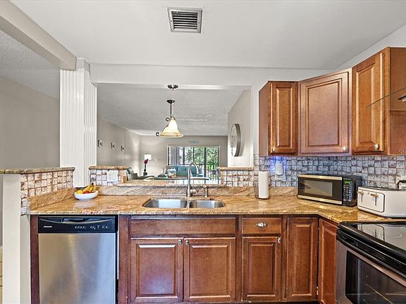 Beautifully updated 2/2 condo on the second floor, with over 1100 square feet, featuring a screened patio accessible from the living room and primary bedroom. The kitchen is tastefully updated with stone countertops, stainless steel appliances and solid wood cabinets. The open concept living room and dining area boasts fresh paint, tile flooring, and an abundance of natural light! The spacious primary suite (18x14) offers room for a sitting area or office space, along with a walk -in closet and private en-suite bath. Additional highlights include an IN-UNIT WASHER AND DRYER, plus plenty of storage throughout. Recent community updates provide peace of mind, including new roofs on all buildings, fresh exterior paint and ongoing improvements to elevators and sidewalks. Ideally located 30 minutes from both Tampa and St Petersburg International airports, as well as the pristine shores of Honeymoon Island and world-famous Clearwater Beach.