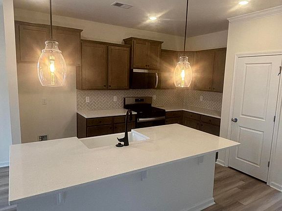 Say hello to the Benton II. This is a 2,295sqft four bedroom, three bathroom beauty. Downstairs you have a flex room that can be an office, game room, whatever you want it to be. There is one full bathroom next to the nicely equipped kitchen. Open floor plan that connects the dining and great rooms. You have an electric fireplace in the great room that allows you to cycle through 9 different flame and 14 rock colors. Middle of Summer and you want the look of the fireplace, but don't want the heat? No problem, you can set it to turn the flames on but no heat come out. Upstairs you have all four bedrooms and two full bathrooms. Bedrooms 2-4 are nice size, owners suite easily big enough for a king size bed. One huge walk-in closet on the backside of the bathroom. Laundry room upstairs as well, so no lugging dirty and clean clothes up and down the stairs. .33 acre lot with a covered patio with ceiling fan, perfect for those lazy days meant for sitting back and relaxing. Yard is landscaped and sprinkler system installed.
