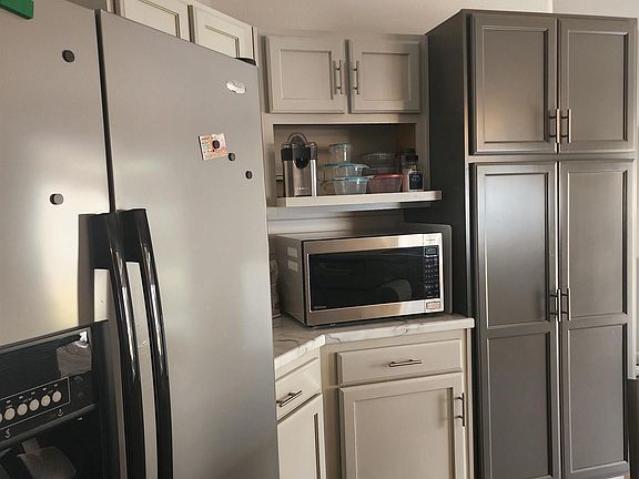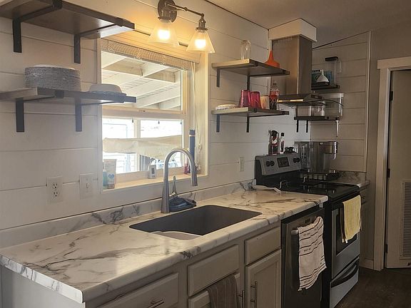 Oversized 3 car garage with attached workshop, approx., 1,400sqft. 220 amp available. RV parking with water/electrical. Home offers split floor plan with large primary bedroom, walk in closet, spacious bath. Property fully fenced with chain link on West side so no views are blocked. Great fire pit and RV cover parking., Island in kitchen not included. Owner requires rent back till Mid June.