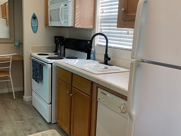 Welcome to your perfect vacation retreat at Tropical Palms! This charming 1 bedroom, 1 bathroom cottage offers the ideal blend of comfort and convenience just minutes from Disney, Old Town, and Orlando's world-famous attractions. Step inside to find a bright, open layout with a cozy living area, fully equipped kitchen, and a private bedroom. While the home comes fully furnished and move-in ready. Enjoy resort-style living with amenities including a sparkling pool, fitness center, clubhouse, game room, playground, mini golf, pickleball, and 24/7 gated security. Monthly lot rent $970 covers landscaping, water, and cable, making this an affordable, low-maintenance getaway. Perfect as a vacation home, winter escape. This cottage is nestled in a well-maintained, highly desirable community. Don't miss the opportunity to own your piece of paradise in the heart of Kissimmee!