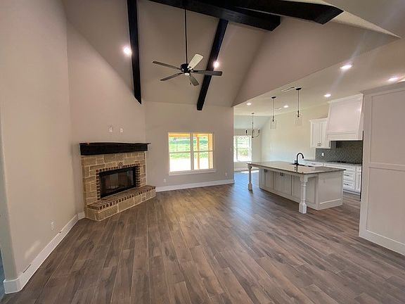 New construction home on 1 acres with lots of nice features. Home has split bedrooms with a large open living area big breakfast bar in the kitchen area with a large pantry. Master includes a walk in shower, double vanities and large closet. Large 3 car garage. Exterior has a large back patio with a wood burning fireplace. Room to roam. Has a small shop-storage on the back of the property.