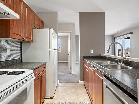 Move in ready condo in the heart of LaSalle just steps away from Windsor Crossings, St. Clair College, minutes to the Ambassador bridge, close to the 401 and the LaSalle Woods & Walking Trails and the Windsor Crossing Outlet Mall and the new development! There’s 4 storey’s in this building and this unit is corner unit on top floor offering you a larger unit, unique layout, quiet location and offers clean front foyer, open concept kitchen, dining room and living room with patio door to a large covered balcony. 2 good sized bedrooms and In-suite laundry room, 2 full baths, one en-suite with walk through closet. All appliances & Nest thermostat included. Immediate possession available. ideal for retirees, young professionals or excellent investment property!