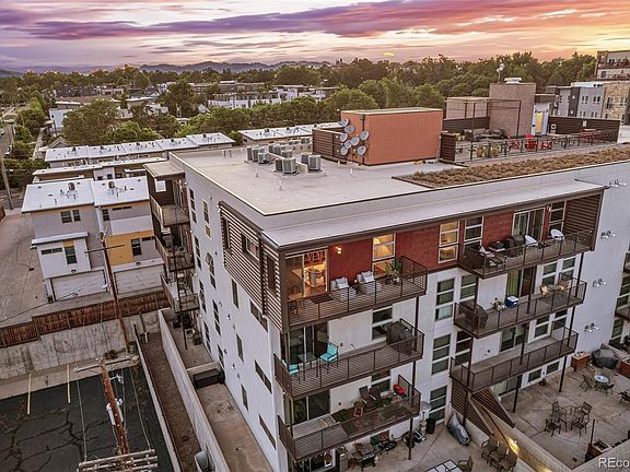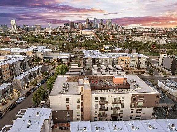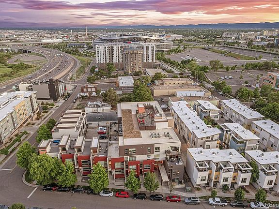 As you step inside, you'll be greeted by the stylish open floor plan and high ceilings. Cook and entertain in style in chef’s dream kitchen, complete with a European gas stove, plentitude of cabinets and counter space, and sizeable island with bar seating. Enjoy panoramic views of the Denver city skyline from the living room. Or step out to the private deck to sip your morning coffee bathing in the views of the city. Primary bedroom's walk-in closet & ensuite bathroom are bound to make you fall in love with this oasis, complete with spa-like shower and dual vanity. Second Bedroom is located on the opposite side, and offers the views of Mile High Stadium and the mountains. Flex space adjacent to 2nd bedroom brings opportunity for adding an in-home office or a cozy reading nook. Well-sized laundry room is also located in-unit for added convenience. Recent updates include all new systems: central AC, furnace & water heater, as well as new refrigerator, wood flooring throughout, and designer lighting. As you ascend to the rooftop deck, you'll discover striking 360-degree views- perfect setting to entertain and wow your guests. Whether it's Bronco’s game, a concert, or a striking display of 4th of July fireworks, this rooftop is absolutely the best place to enjoy the vibrancy of city living. Plus, with two parking spaces in the secured garage (26$27), parking is always hassle-free. Exercise with ease without leaving building:yoga room and fitness room are located within. For outdoor workouts, enjoy greenery of Jefferson Park or follow Colfax Marathon trail that starts at the stadium 2 blocks away. Indulge in the thriving local scene with Briar Commons Brewery and coffee shop just 1 block away. Or follow bike lanes East to LoDo & Union Station or go West to the Highlands & Sloan’s Lake.