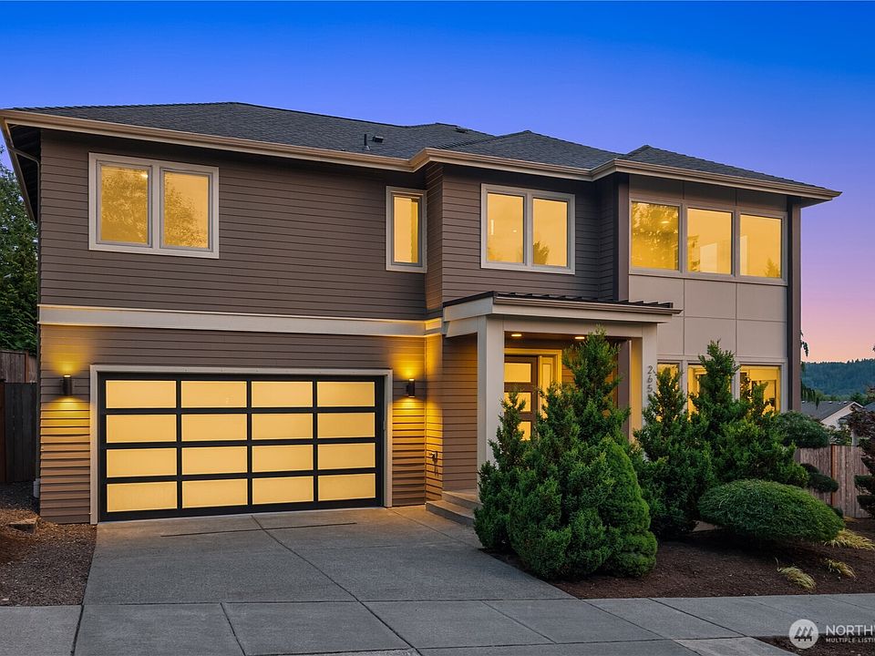 Modern elegance and design, crafted by award winning RD Homes. This 3-Star Built Green residence, set along the hillside of In Town Duvall, captures sweeping valley views from every angle. Vaulted ceilings enhance the living space, creating an atmosphere both modern and refined. An open concept layout seamlessly connects the gourmet kitchen with high-end appliances, the spacious dining room, and the light filled living area that extends to a private outdoor patio. The grounds are mature and manicured, with towering arborvitae providing year round privacy and evergreen plantings completing the landscape. All within walking distance to schools, dining, and local activities—this is luxury living in the heart of Duvall.