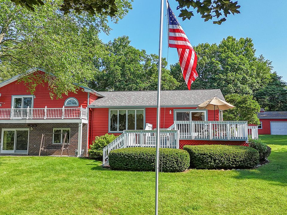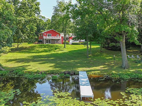 Your own little slice of heaven awaits with 232 +/- feet of private waterfront on Mill Pond! This one-owner home has been meticulously cared for and features several updates throughout. The interior boasts 4 beds/3.5 baths and 2800+ sqft of finished living space. The main level is open-concept with vaulted ceilings and offers beautiful views of the property from the kitchen, dining area and living room. The primary suite is located on the upper level with a private bath & balcony overlooking the expansive backyard. The lower level walkout holds a spacious family room and access to the patio, perfect for entertaining family & Friends! No need to worry about storage space, this property comes with an attached 2-car garage, detached 32x22 outbuilding & an unfinished basemen Spend your days fishing at the end of your pier, relaxing on the freshly painted deck, or roasting s'mores around the campfire.